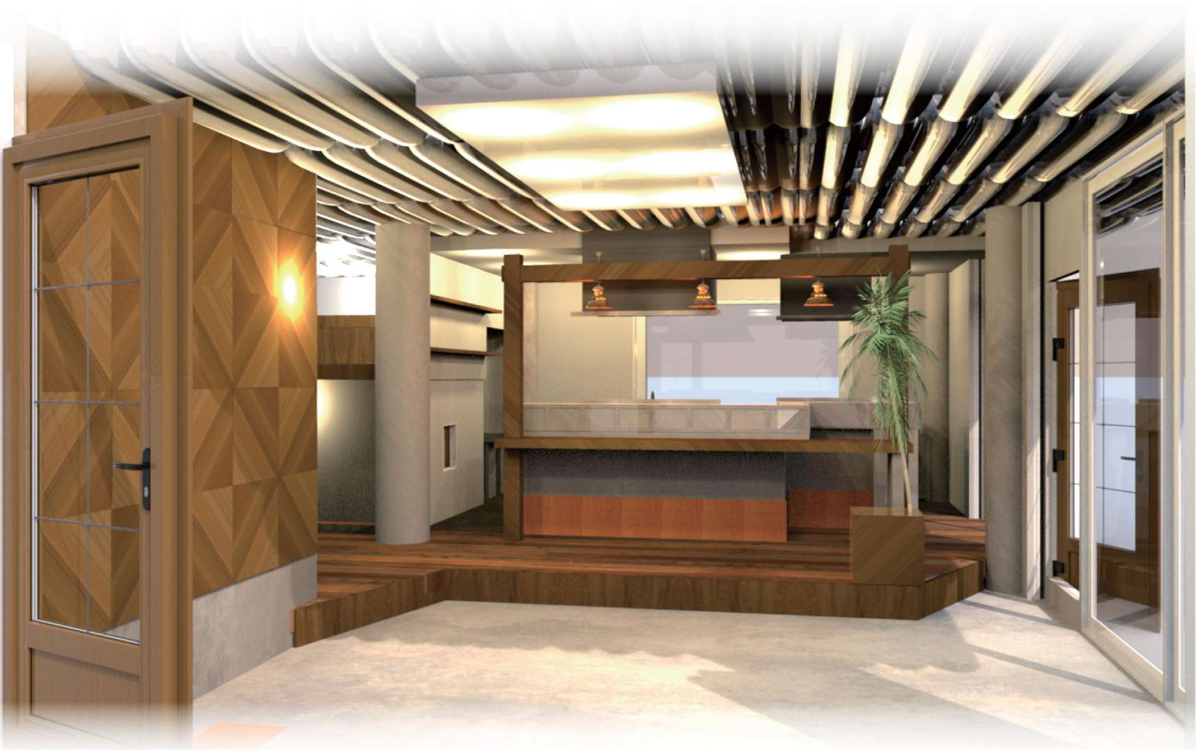 古材なども使って馴染み易い空間に仕立てるデザインです。